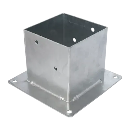 The Galvanized Post Support is designed to mount wooden elements onto concrete bases, ensuring a firm and stable fixing. It allows for proper elevation of the wood in relation to the ground, facilitating ventilation and protecting the structure.