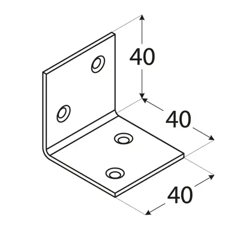 O esquadro de fixação 40x40x40 mm é ideal para pequenos trabalhos de carpintaria, montagem de mobiliário e reforço de uniões em ângulo. A sua estrutura compacta e robusta permite uma fixação segura e estável de elementos em madeira, sendo especialmente útil em zonas onde é necessário reforçar ou alinhar peças a 90°.