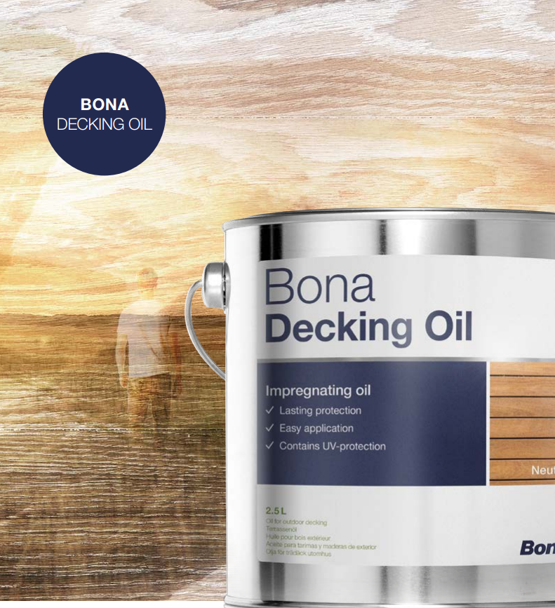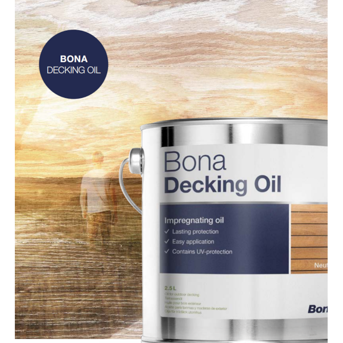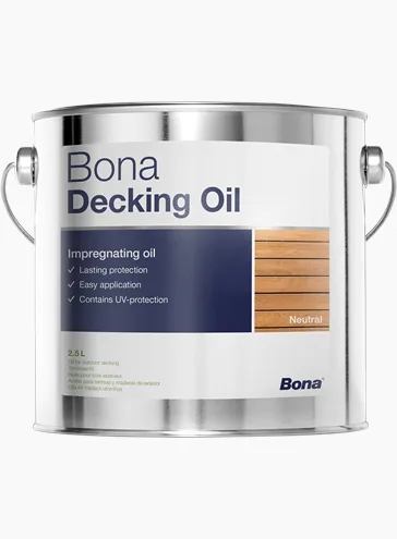 Bona Decking Oil 2,5L é a solução duradoura, prática e esteticamente agradável para manter a sua madeira exterior sempre protegida, bem cuidada e com aparência natural.