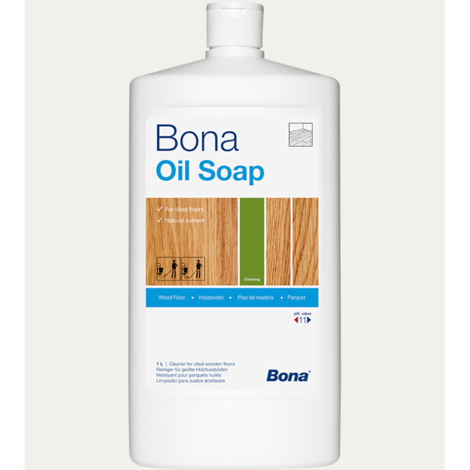 Bona Soap inclui alguns aditivos especiais desenvolvidos para este tipo de pavimentos oleados, recupera o óleo da superfície eliminado durante o processo de limpeza. É um produto de limpeza concentrado para diluir com água na proporção de 0,2 litros da Bona Soap em 10 litros de água.