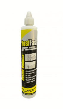 A Bucha Química Resifast de 300ml é uma solução de fixação de alta resistência, ideal para aplicações em madeira, betão, alvenaria, tijolo maciço ou oco, e pedra natural. Proporciona uma ancoragem segura e duradoura de varões roscados, varões de aço, parafusos e outros elementos de fixação estrutural.