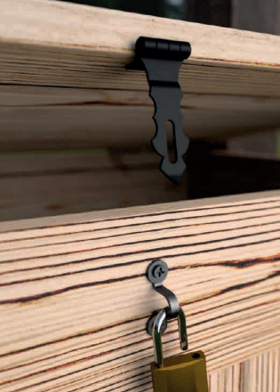 Dobradiça decorativa ZOZ 75 com fecho integrado, fabricada em aço resistente com acabamento preto anticorrosivo. Projetada para uso exterior, esta dobradiça garante alta resistência à ferrugem e intempéries, mantendo a funcionalidade e o visual por muito mais tempo.