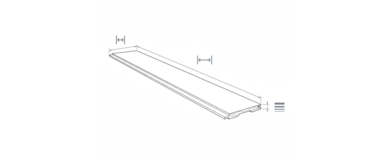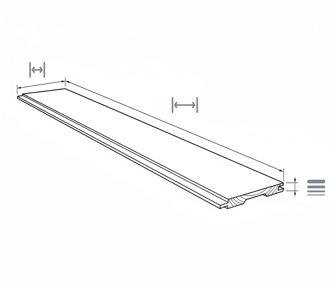Cada peça tem 3,00 m de comprimento, 9,6 cm de largura e 9,5 mm de espessura, cobrindo cerca de 3,46 m² por unidade.