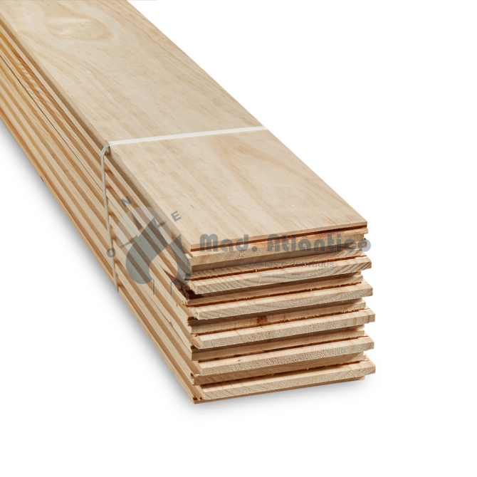 Soalho de Pinho Chileno, uma madeira estável, clara e versátil, com encaixe macho-fêmea nas 4 faces que garante uma instalação precisa, firme e com acabamento uniforme. Ideal para quem procura um pavimento económico, mas com excelente apresentação e resistência.
