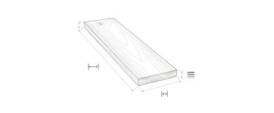 Disponíveis em comprimento de 2,5 metros com várias larguras: 100 mm, 150 mm, 200 mm e 250 mm, todas com 27 mm de espessura.